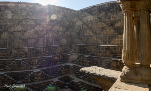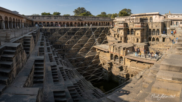 Chand Baori ist ein architektonisches Wunder: 3.500 perfekt symmetrische, schmale Stufen bilden ein beinahe magisches Labyrinth. Das Spiel von Licht und Schatten verleiht der Anlage ihre faszinierende Wirkung – eine zeitlose Schönheit, die sowohl menschlichen Einfallsreichtum als auch große Kunstfertigkeit widerspiegelt.
