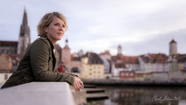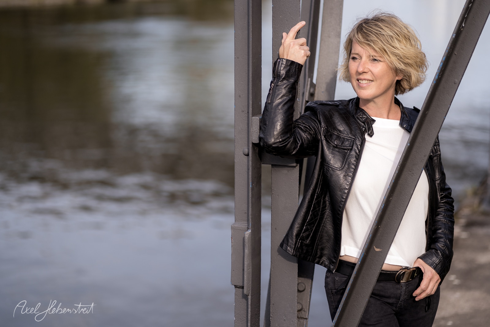 Schöne Fotosession mit Unternehmensberaterin Claudia Zimmer an der Donau in Regensburg.