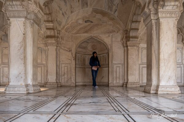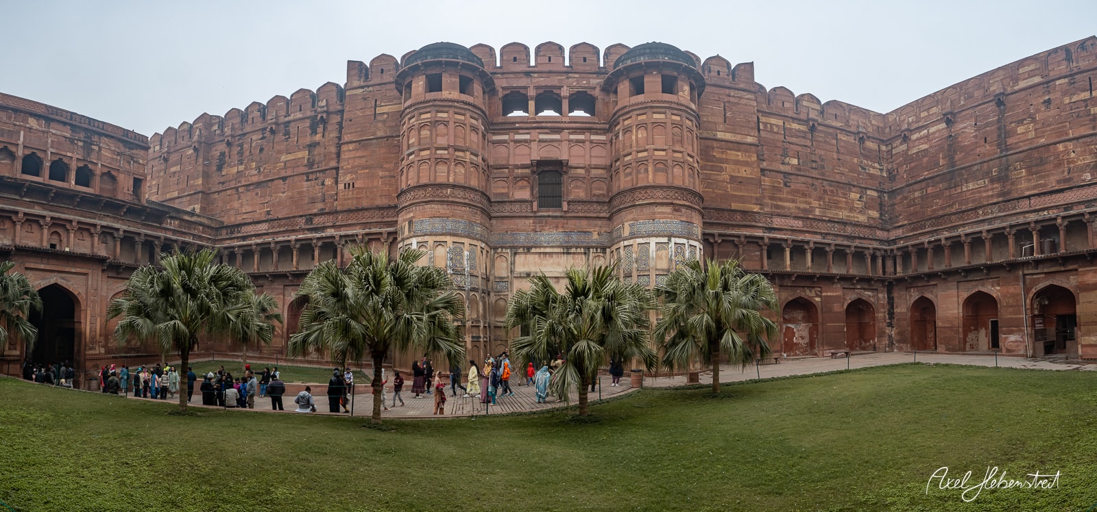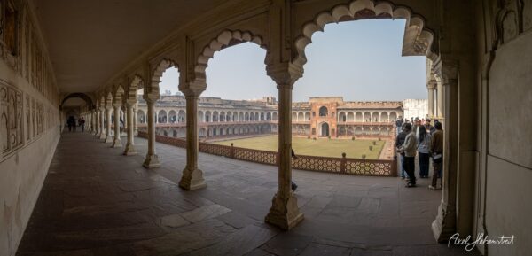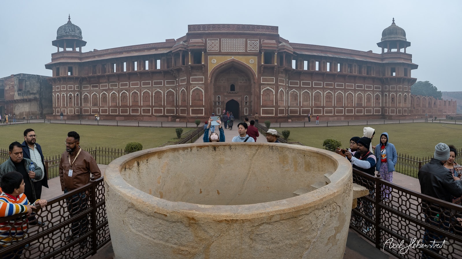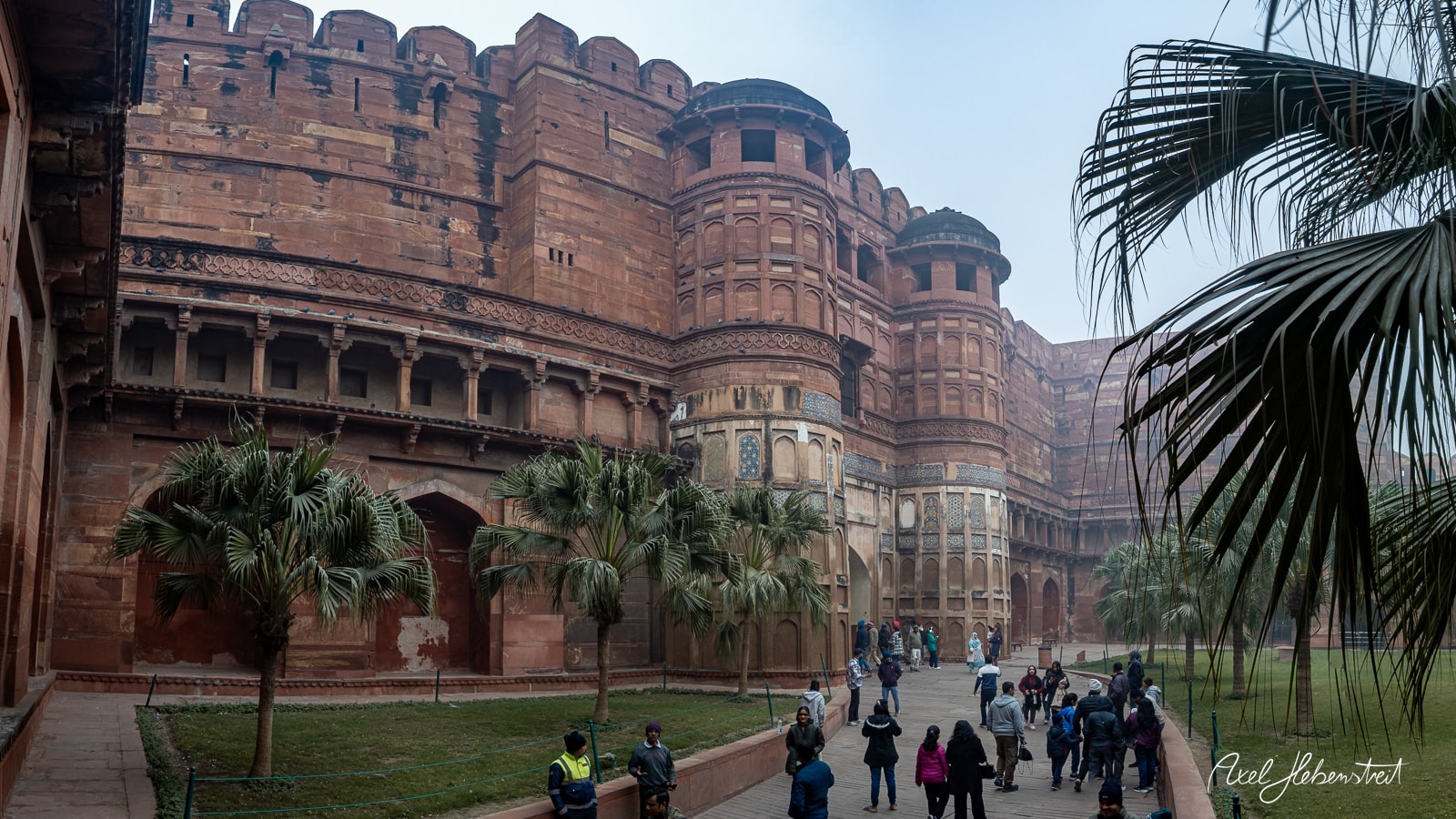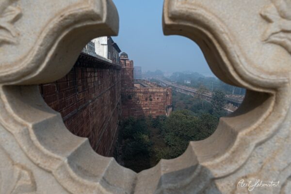 While Leeliu stayed at the hotel with a cold, I set out to explore the Red Fort of Agra through the winter smog of northern India. Agra Fort is a vast fortress and palace complex from the era of the Mughal emperors and served, with interruptions, as the Mughal residence during the 16th and 17th centuries.