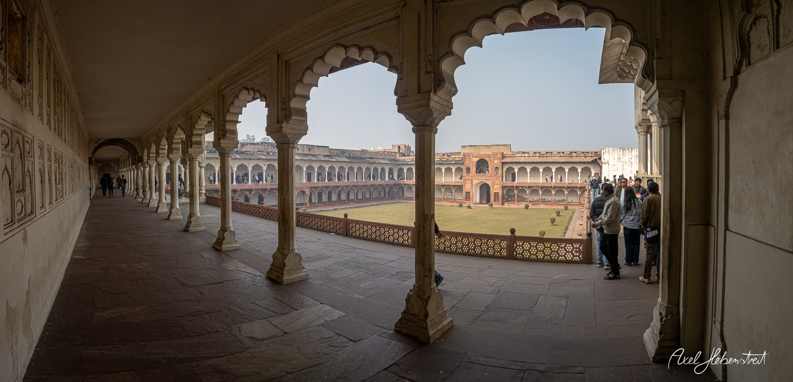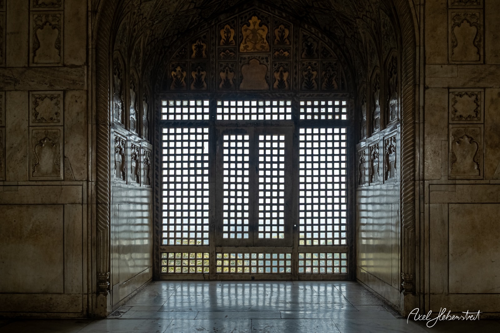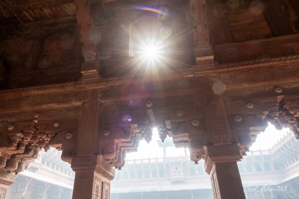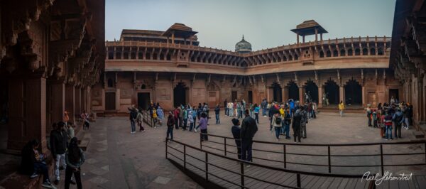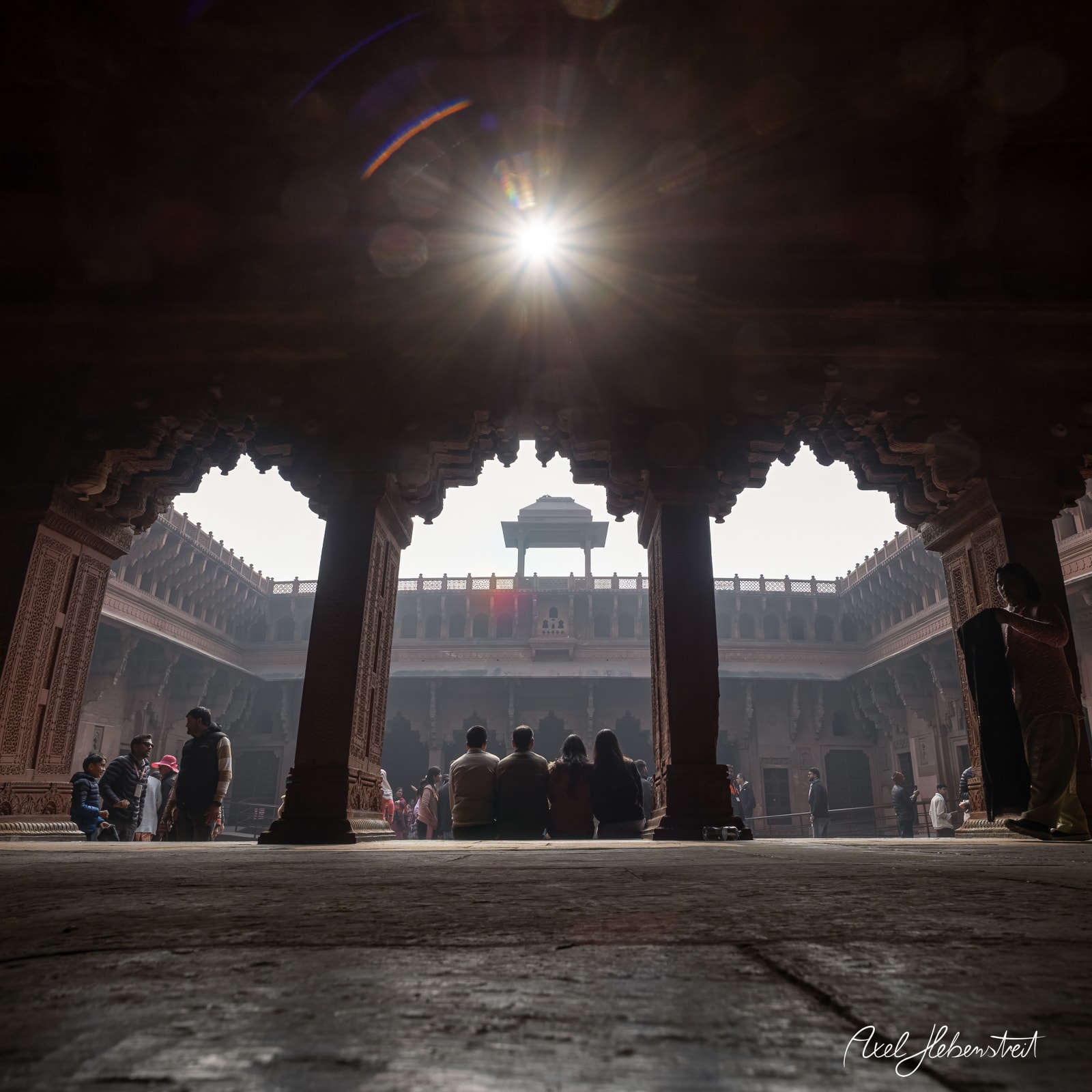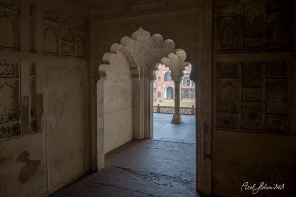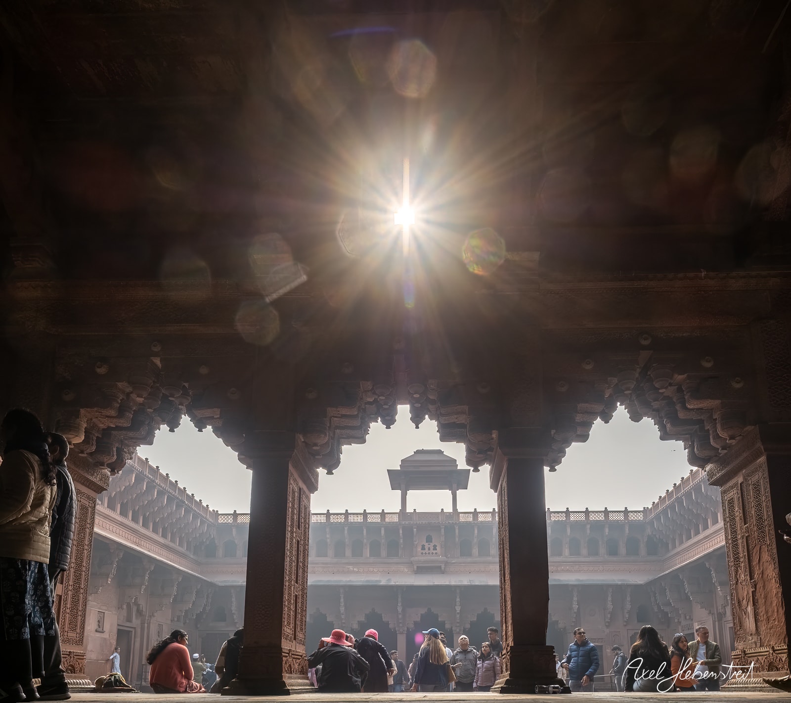 While Leeliu stayed at the hotel with a cold, I set out to explore the Red Fort of Agra through the winter smog of northern India. Agra Fort is a vast fortress and palace complex from the era of the Mughal emperors and served, with interruptions, as the Mughal residence during the 16th and 17th centuries.