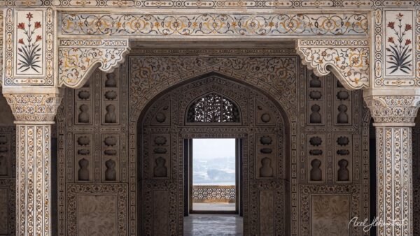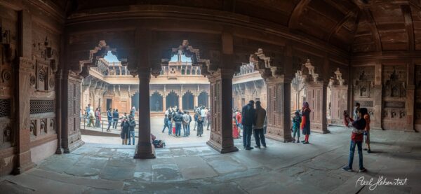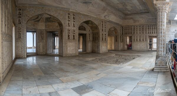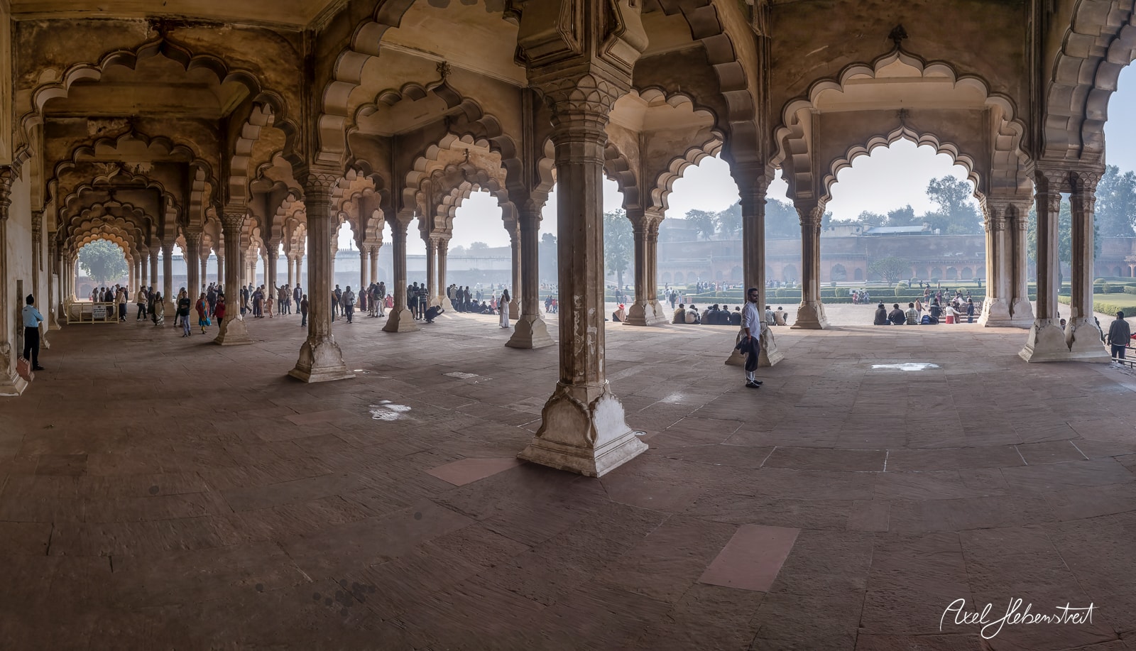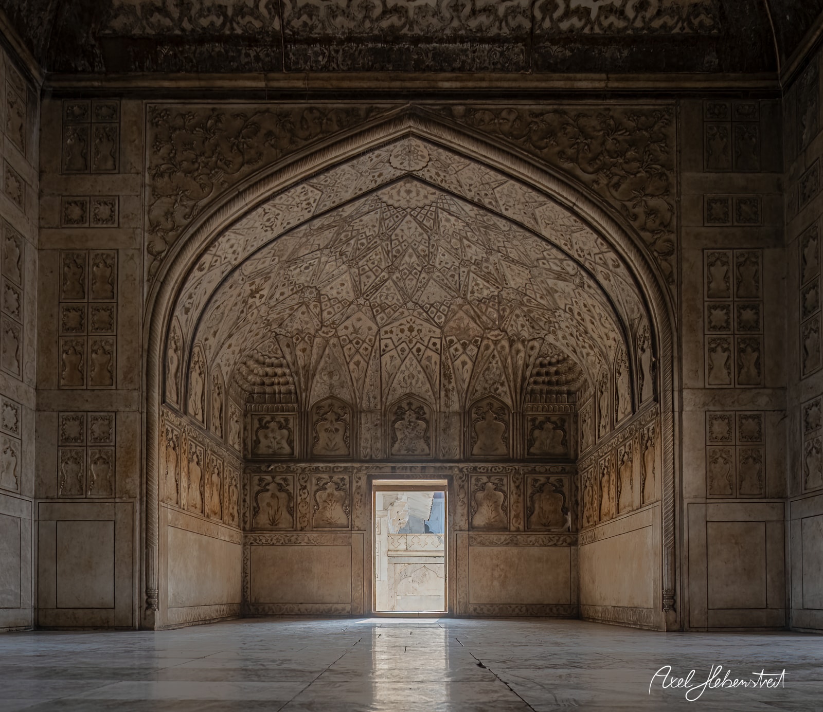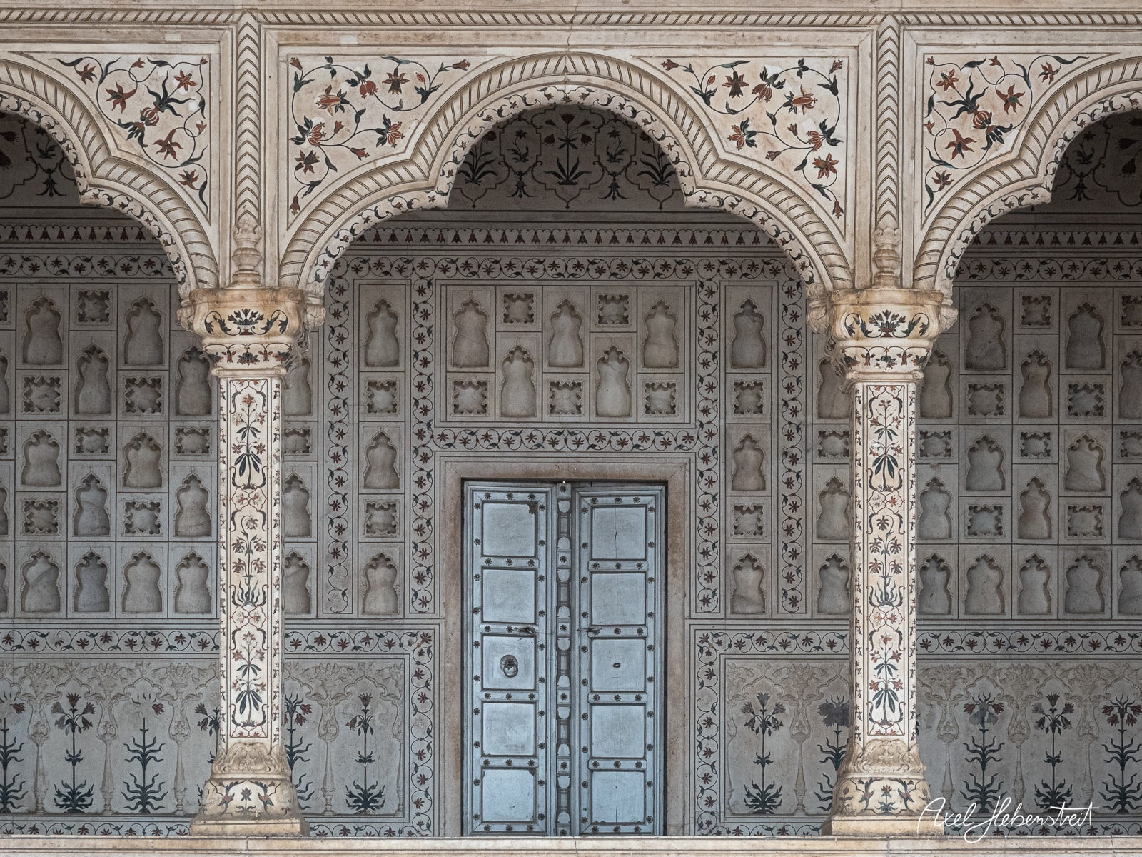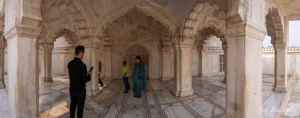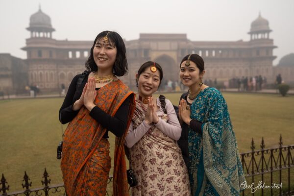 While Leeliu stayed at the hotel with a cold, I set out to explore the Red Fort of Agra through the winter smog of northern India. Agra Fort is a vast fortress and palace complex from the era of the Mughal emperors and served, with interruptions, as the Mughal residence during the 16th and 17th centuries.