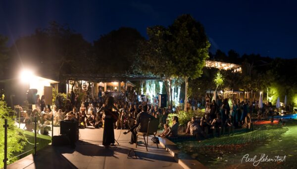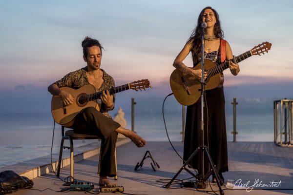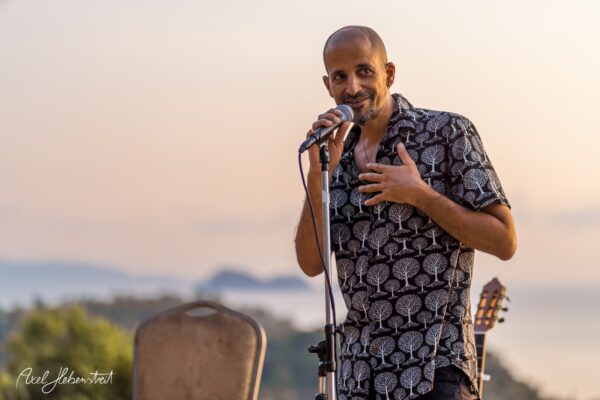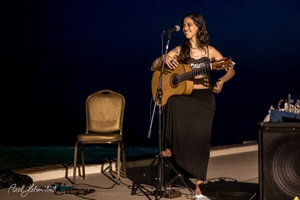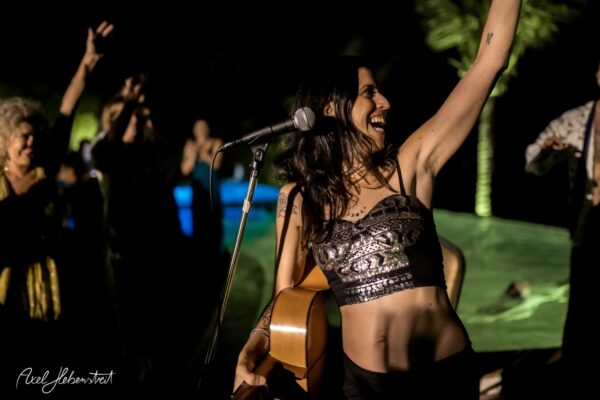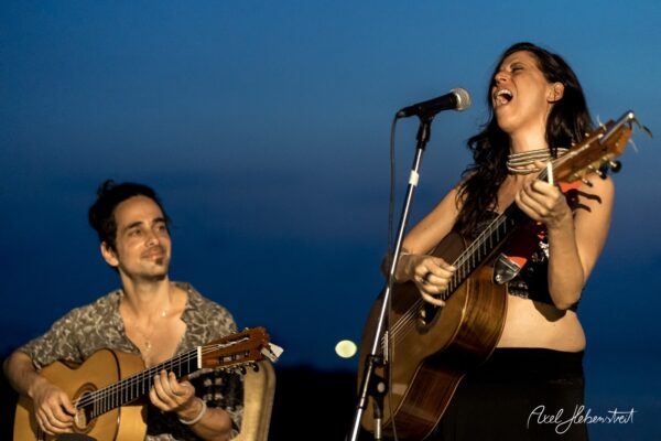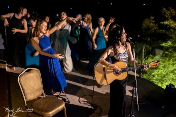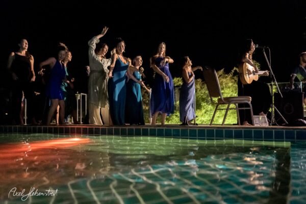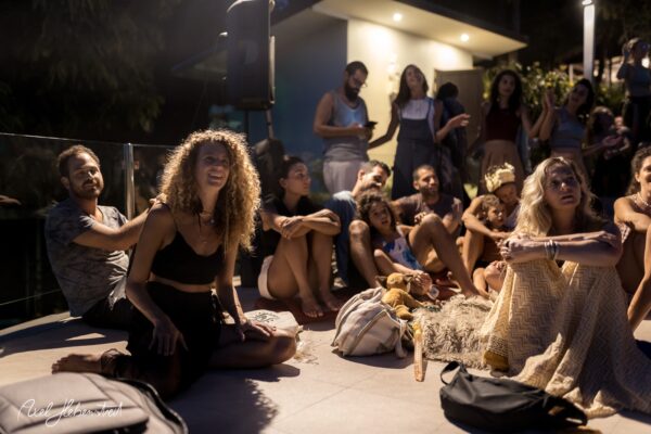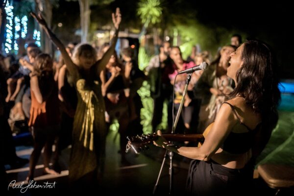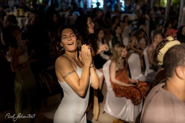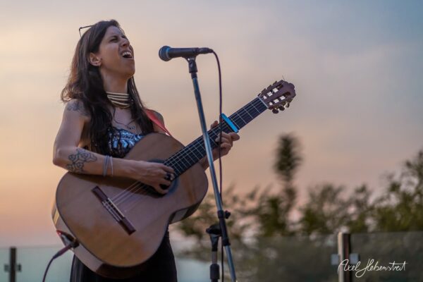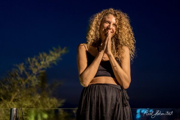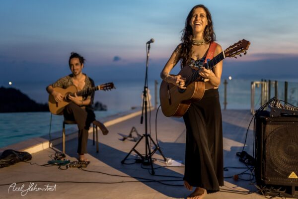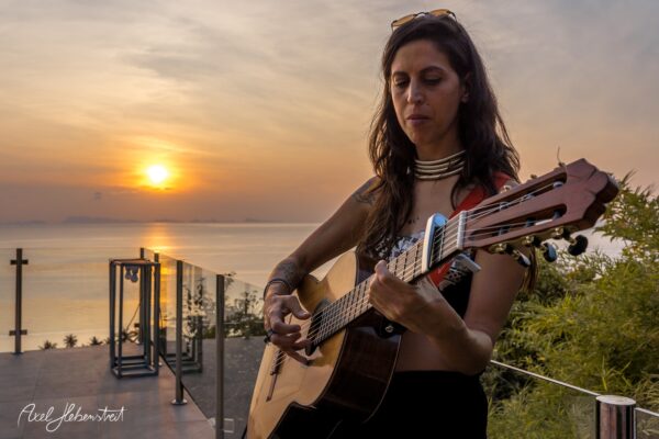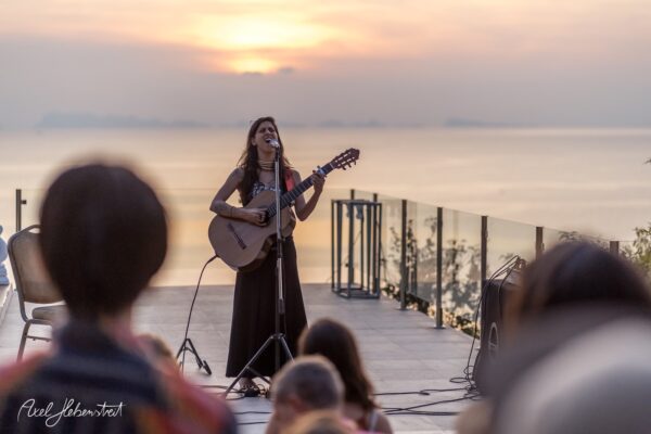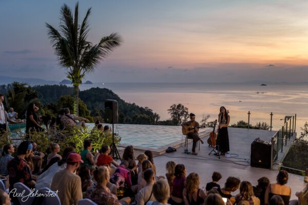 Gathering hearts and souls in harmony and unity in mama music on another beautiful evening in Koh Panghan, at one of the islands prime locations for a glorious sunset, Sunset Hill Resort – beloved visiting international healing artist & musician, one of the leaders of the phenomenon community of Singing Circles in Israel, Orka Teppler