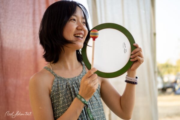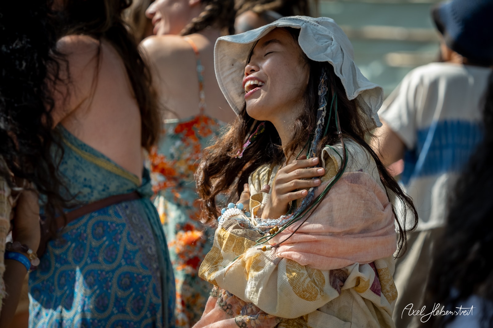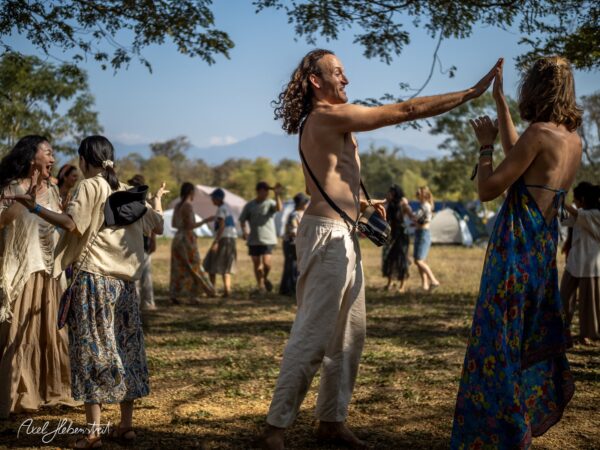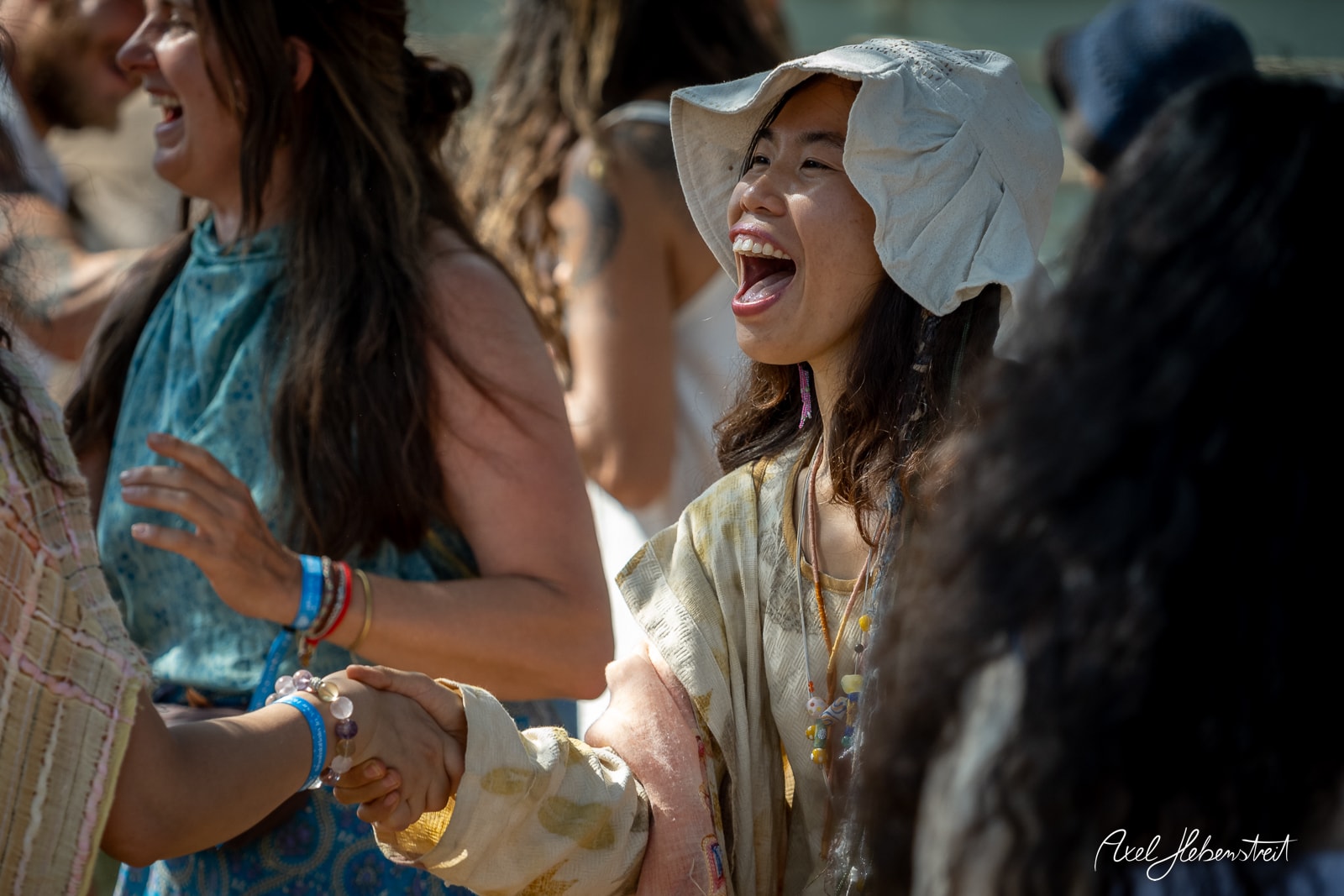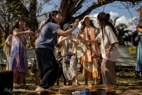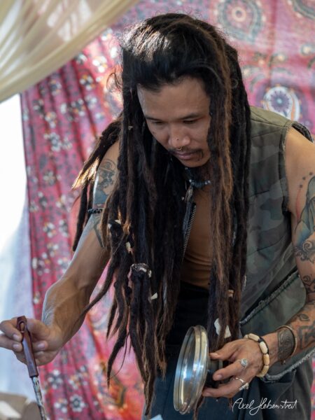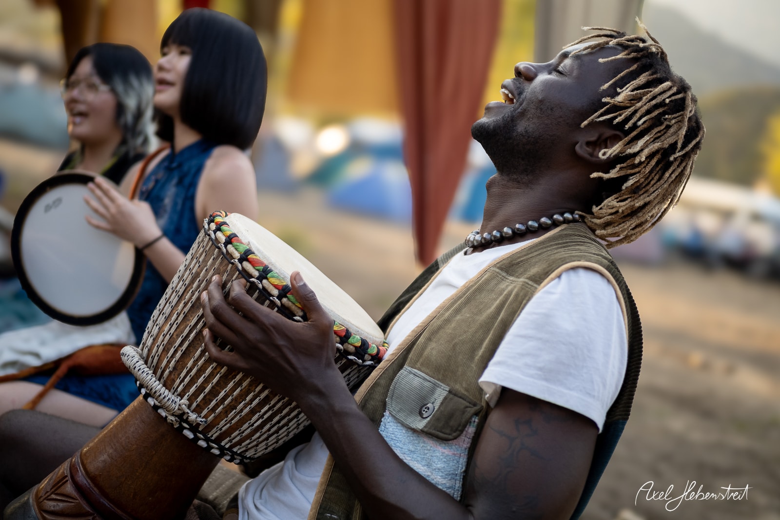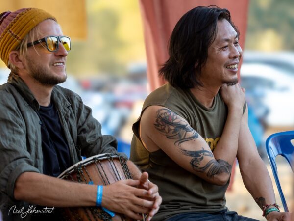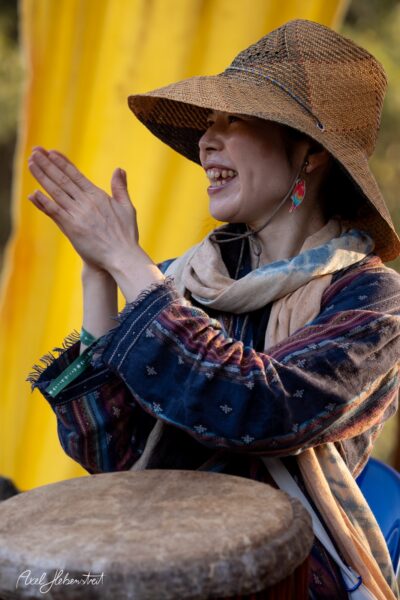 “Hepopa! Axel & I return to the festival on the 2nd day and it feels like the atimosphere and crowd doubled like magic! There was a rich vibrant sense of aliveness, from the movement and activity of people with their stalls and sacred wares for trade, for sale, to peoples sitting, being together, playing music, drinking their morning teas, coffees, coconuts, to children doing arts and crafts, playing & running around – we were so glad to join a Dance of Universal Peace circle. Singing, dancing in connection and harmony together, with our final circle drumming and singing with drumjam tribe leader Kumi again before we left – with our hearts full and in deep joy that we had come and received the goodness, beauty of this wonderful festival