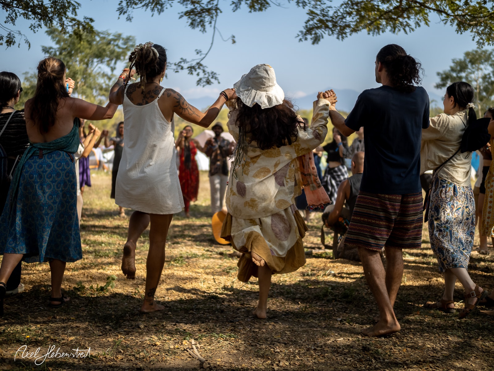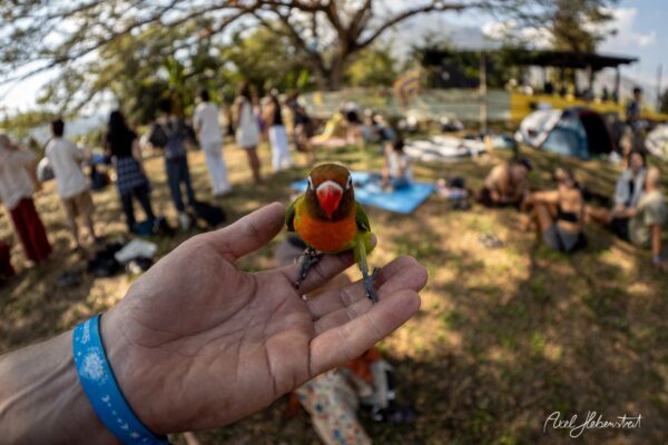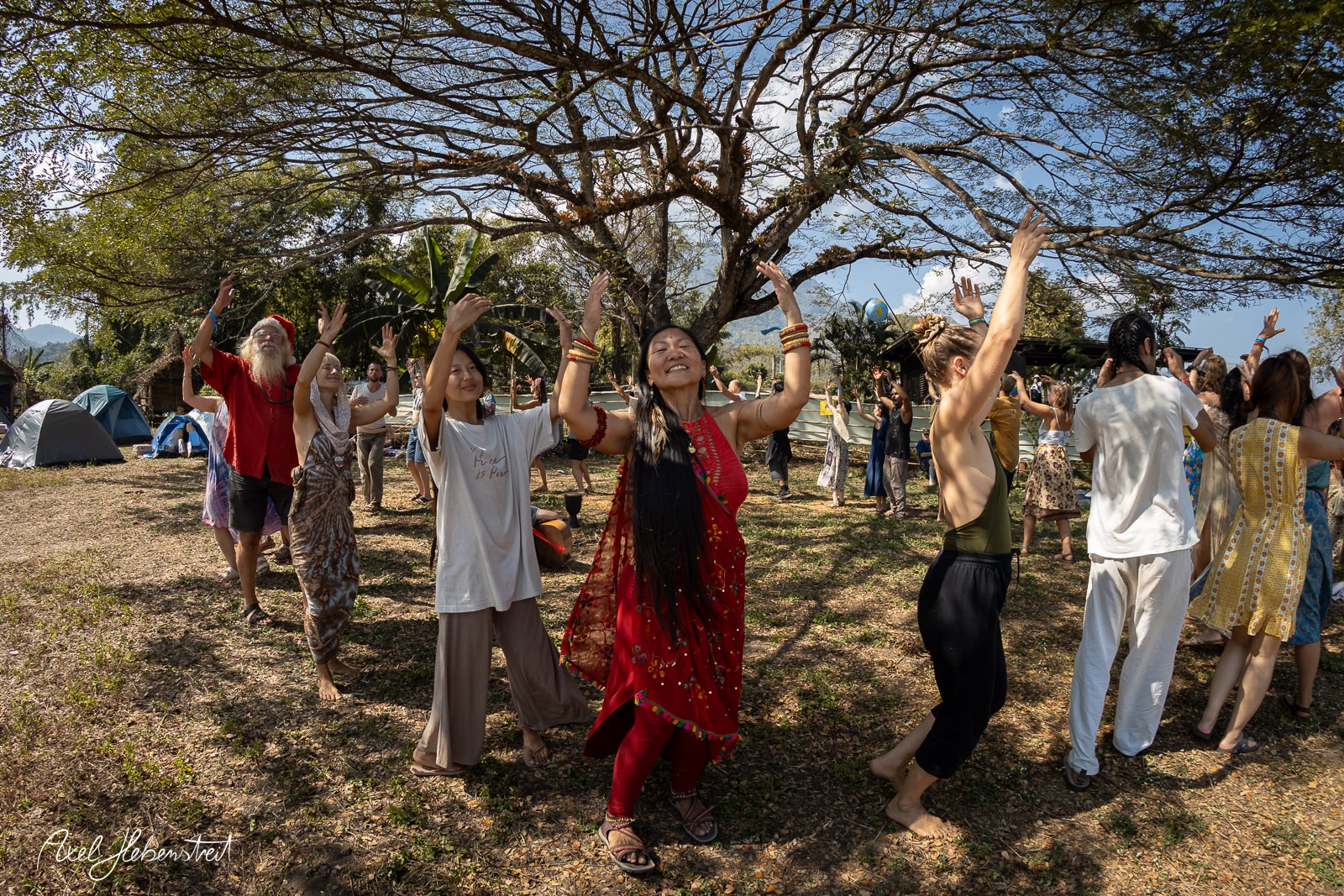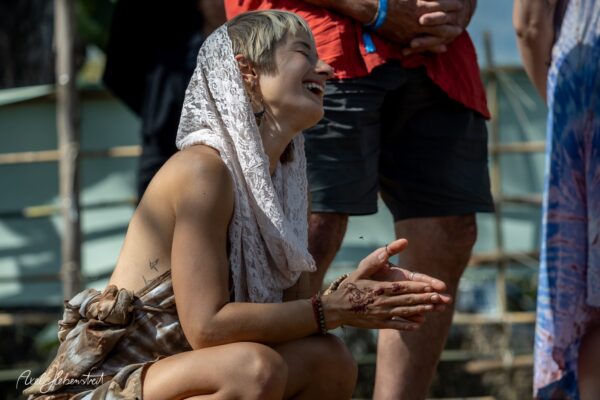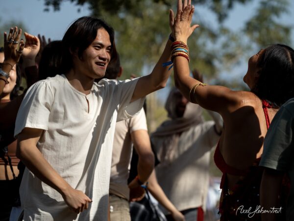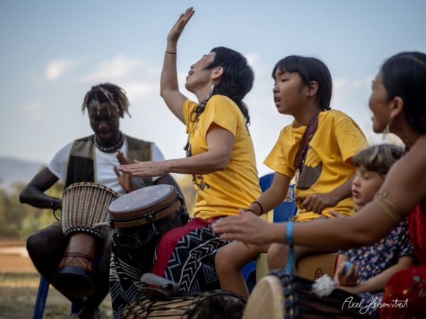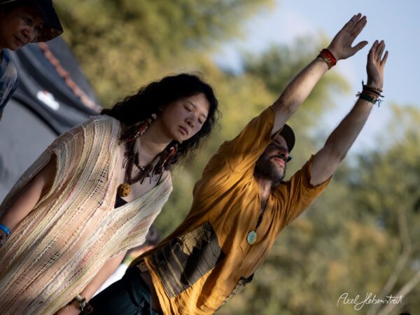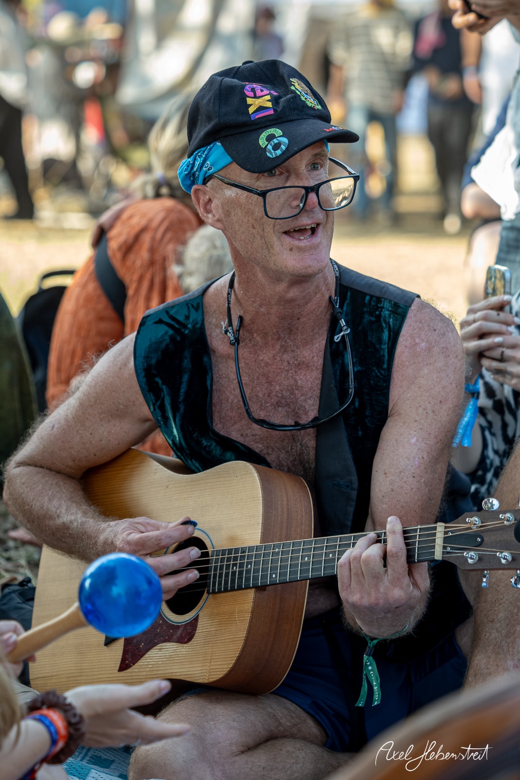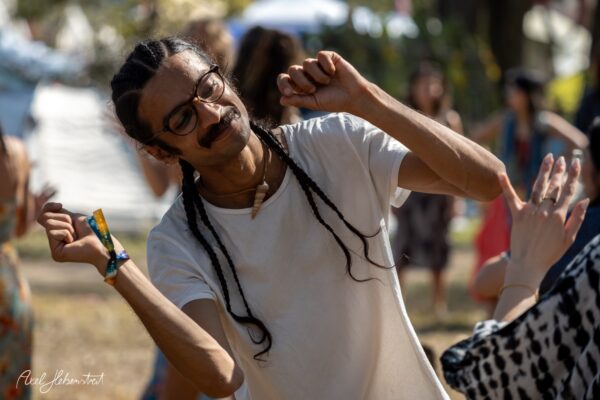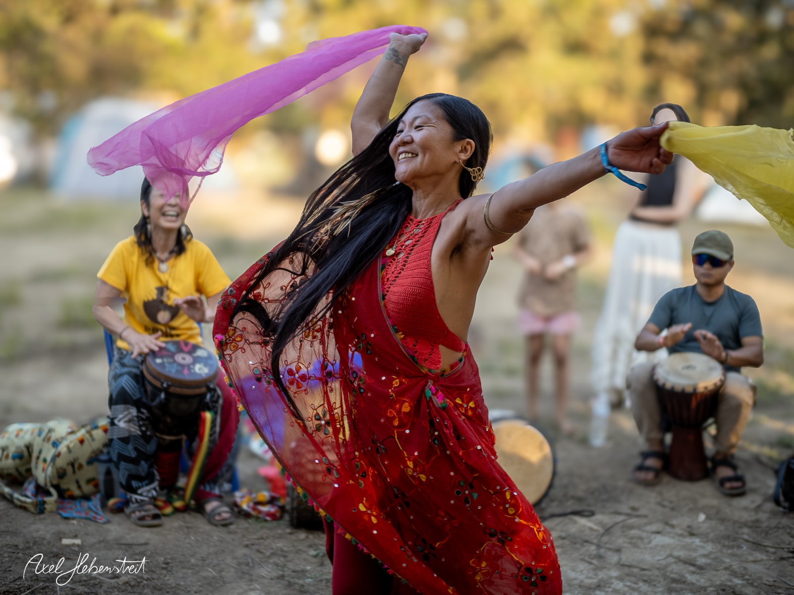 “Hepopa! Axel & I return to the festival on the 2nd day and it feels like the atimosphere and crowd doubled like magic! There was a rich vibrant sense of aliveness, from the movement and activity of people with their stalls and sacred wares for trade, for sale, to peoples sitting, being together, playing music, drinking their morning teas, coffees, coconuts, to children doing arts and crafts, playing & running around – we were so glad to join a Dance of Universal Peace circle. Singing, dancing in connection and harmony together, with our final circle drumming and singing with drumjam tribe leader Kumi again before we left – with our hearts full and in deep joy that we had come and received the goodness, beauty of this wonderful festival