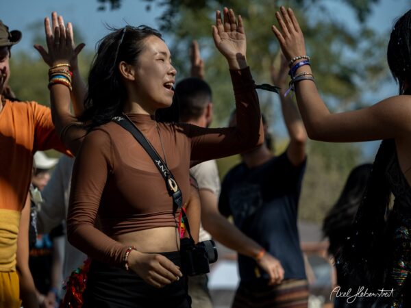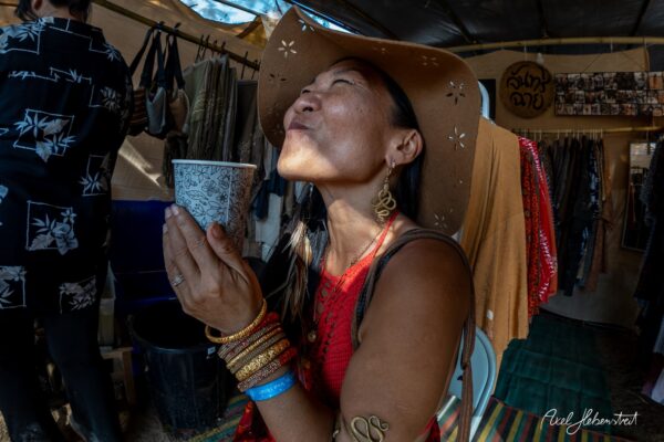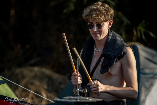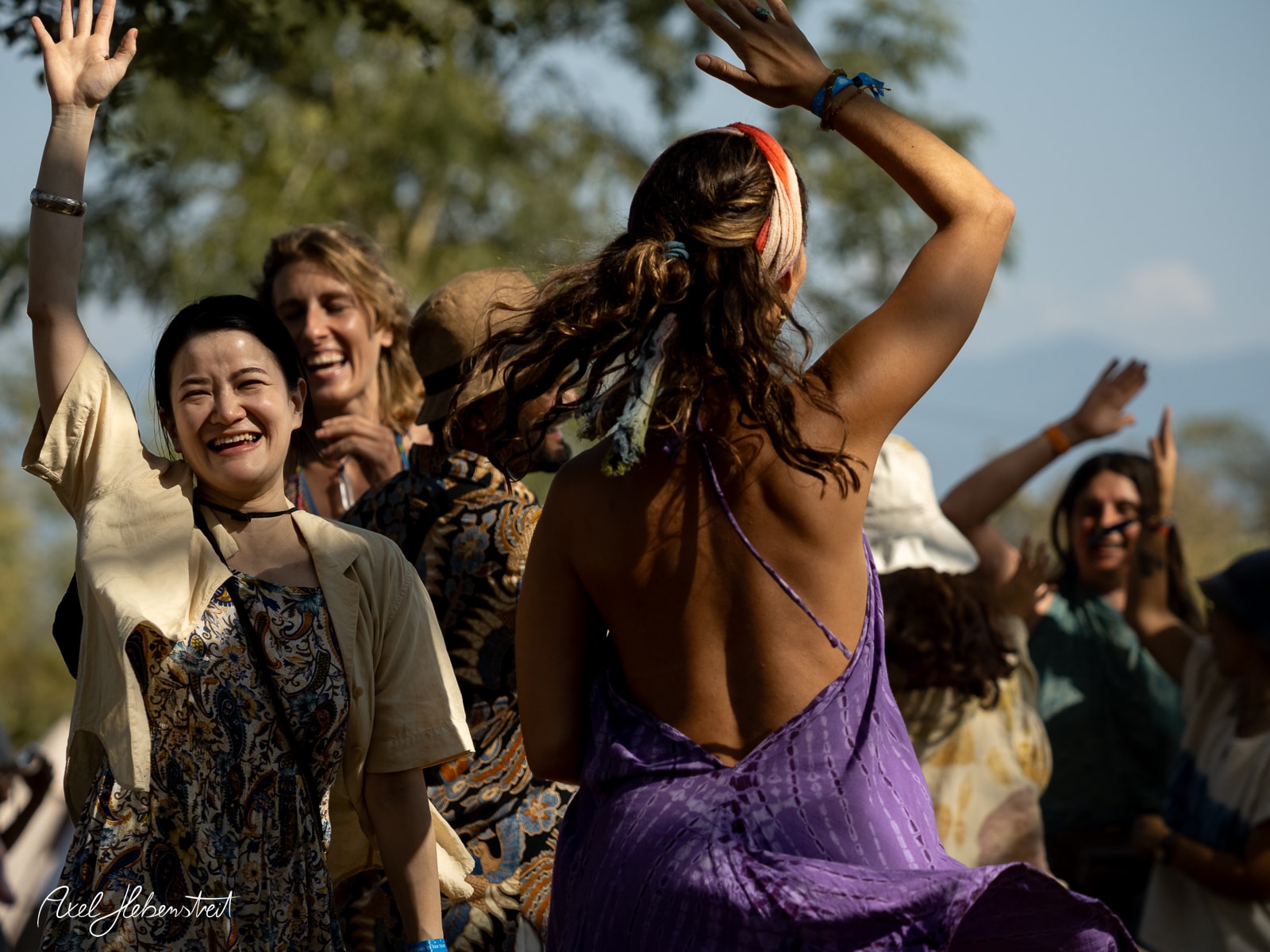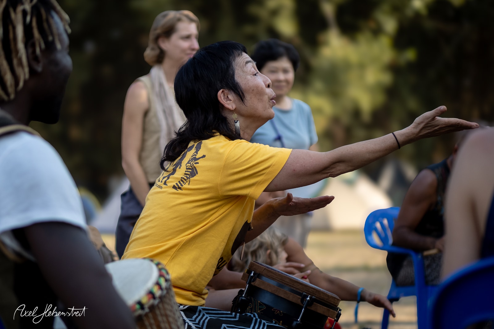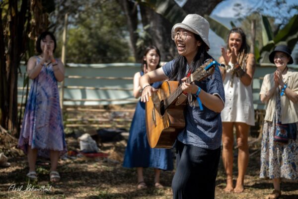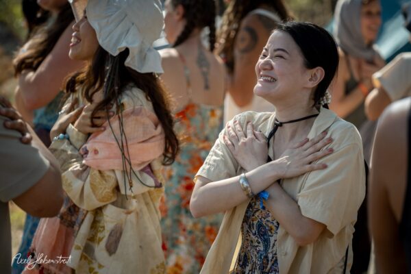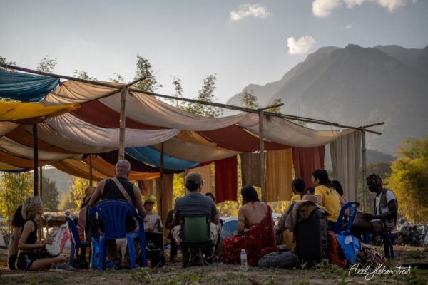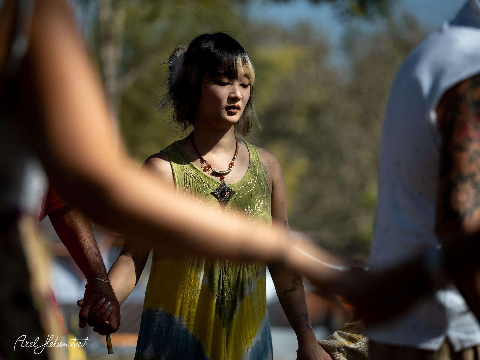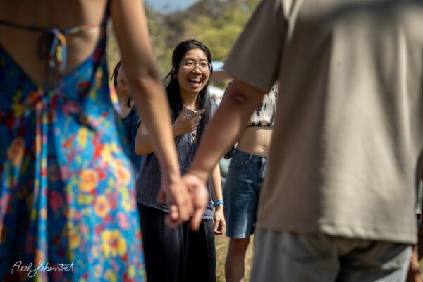 “Hepopa! Axel & I return to the festival on the 2nd day and it feels like the atimosphere and crowd doubled like magic! There was a rich vibrant sense of aliveness, from the movement and activity of people with their stalls and sacred wares for trade, for sale, to peoples sitting, being together, playing music, drinking their morning teas, coffees, coconuts, to children doing arts and crafts, playing & running around – we were so glad to join a Dance of Universal Peace circle. Singing, dancing in connection and harmony together, with our final circle drumming and singing with drumjam tribe leader Kumi again before we left – with our hearts full and in deep joy that we had come and received the goodness, beauty of this wonderful festival