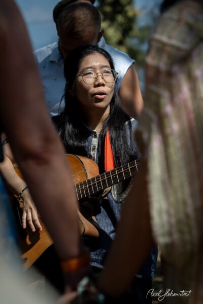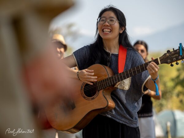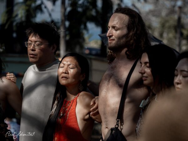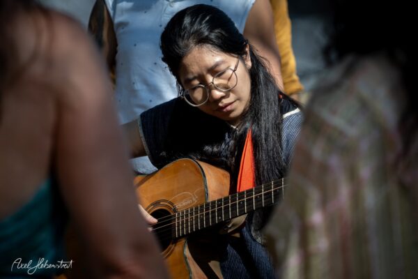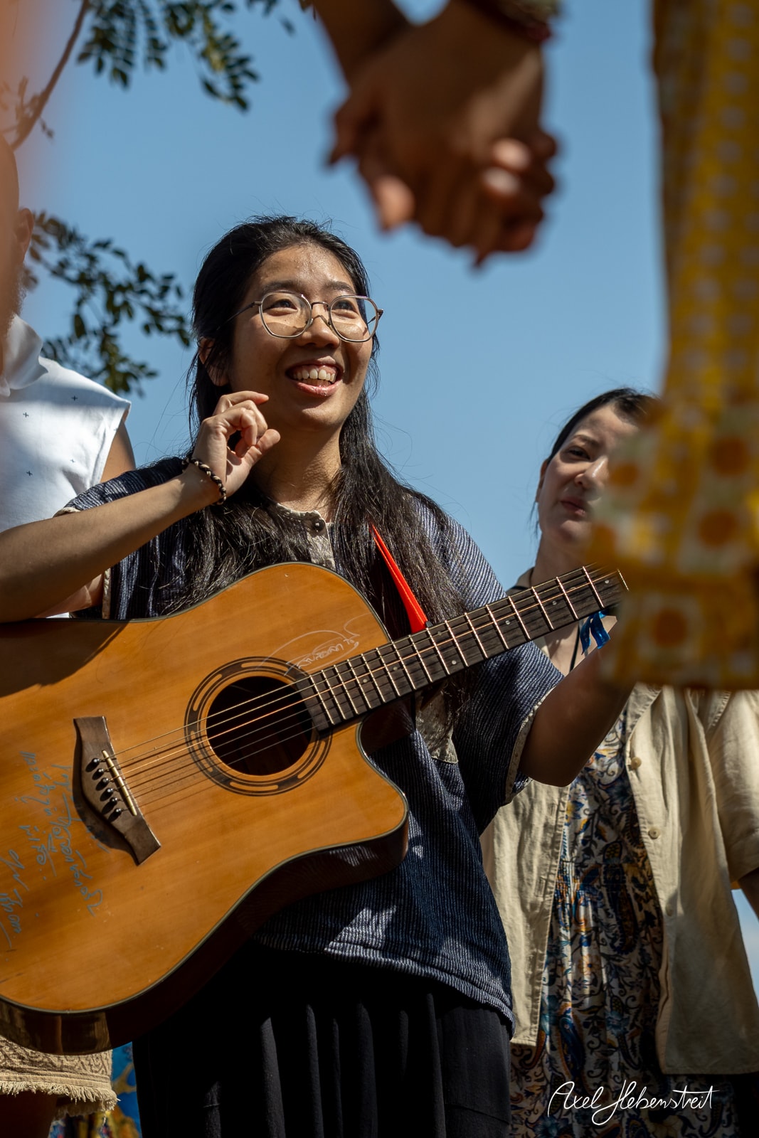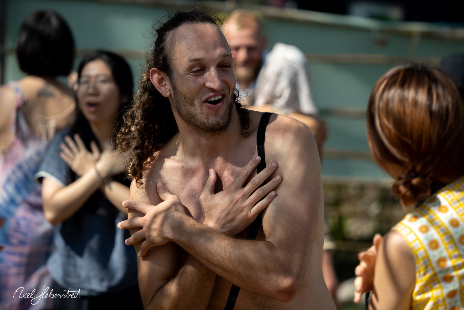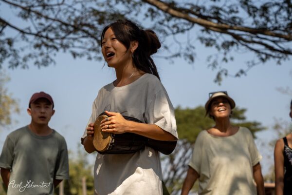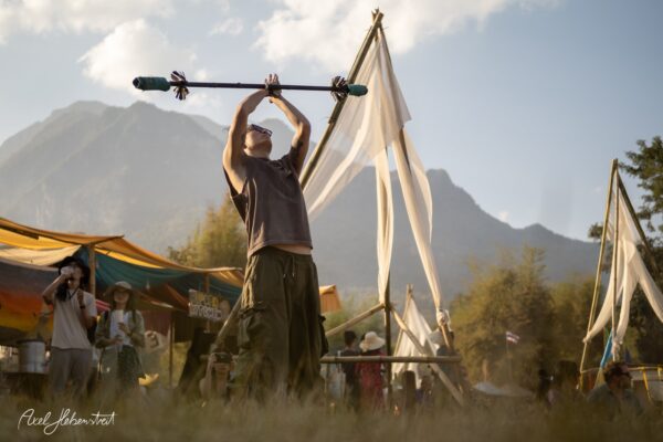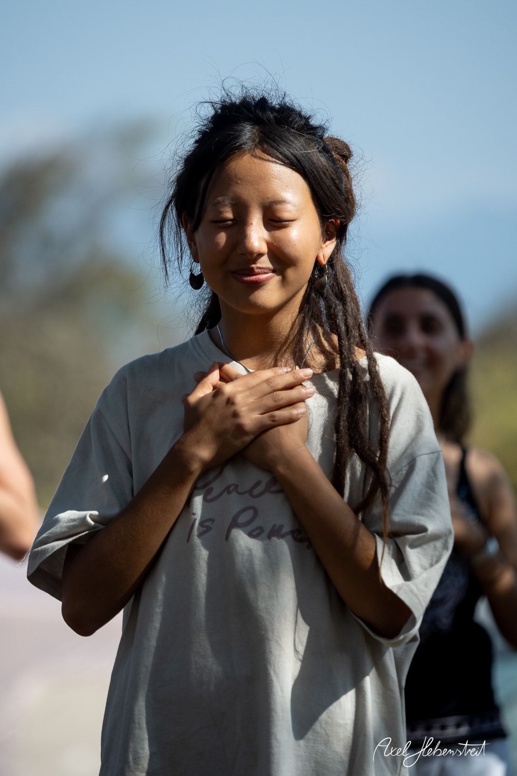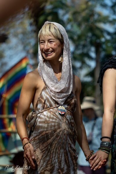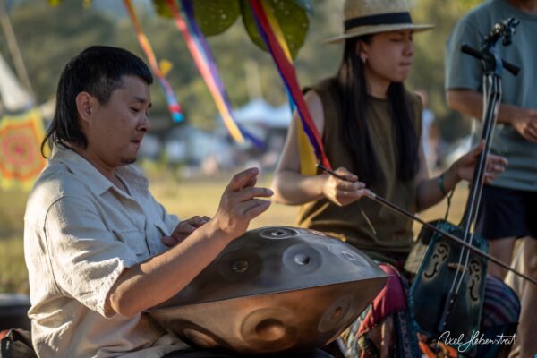 “Hepopa! Axel & I return to the festival on the 2nd day and it feels like the atimosphere and crowd doubled like magic! There was a rich vibrant sense of aliveness, from the movement and activity of people with their stalls and sacred wares for trade, for sale, to peoples sitting, being together, playing music, drinking their morning teas, coffees, coconuts, to children doing arts and crafts, playing & running around – we were so glad to join a Dance of Universal Peace circle. Singing, dancing in connection and harmony together, with our final circle drumming and singing with drumjam tribe leader Kumi again before we left – with our hearts full and in deep joy that we had come and received the goodness, beauty of this wonderful festival