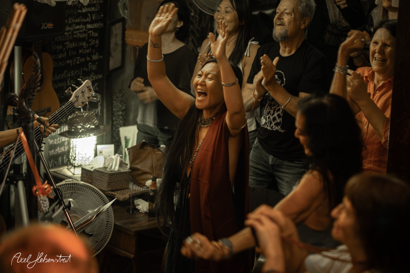 The main performance from Isan band, blending their traditional folk instruments with contemporary beats and sounds, particularly lit up the house with their eclectic compositions and creativity throughout the evening, leaving all who were there together, with greater joy, connection, celebration and beauty.
