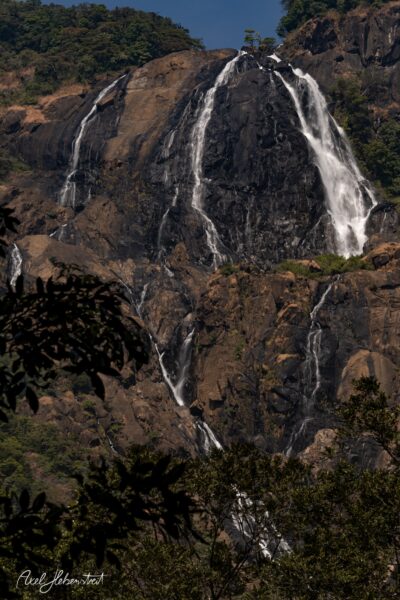 Die Dudhsagar-Wasserfälle – auf Konkani „Meer aus Milch“ – sind ein atemberaubender, vierstufiger Wasserfall, der aus 310 Metern Höhe in die Tiefe stürzt.