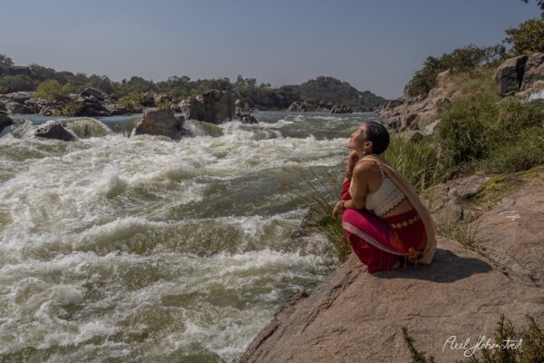 An einem Tag voller Abenteuer und Entdeckungen sind wir bei den Hampi-Wasserfällen angekommen. Sie wirkten unscheinbar, nicht hoch oder gewaltig, und es war niemand dort. Fast so, als würde sie leise um etwas Aufmerksamkeit, Fürsorge und Liebe bitten. Rund um die Steine und Felsen, aus denen sie hervorsprudelte, lag viel Müll. Und gleichzeitig waren wir tief berührt und dankbar, die Kraft von Mutter Natur, von diesem Wasser, erleben zu dürfen.
