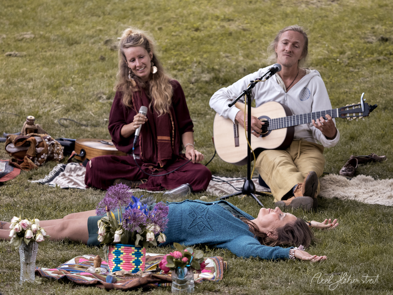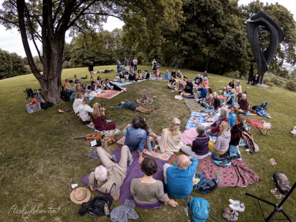 Anlässlich zu Purna’s 60. Geburtstag gab es am Sonntag den 22. Mai 2022 an der Schuttblume am Olympiaberg eine tribal/ecstatic/shamanic Wave mit DJ Vish und mit anschließendem Singkreis mit Purna’s Herz-Musikerfreunden und -Freundinnen, wie zum Beispiel Laeela (Neelam & David Mages), Rauhsna, Simon & Michael und Alex.