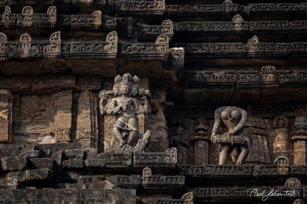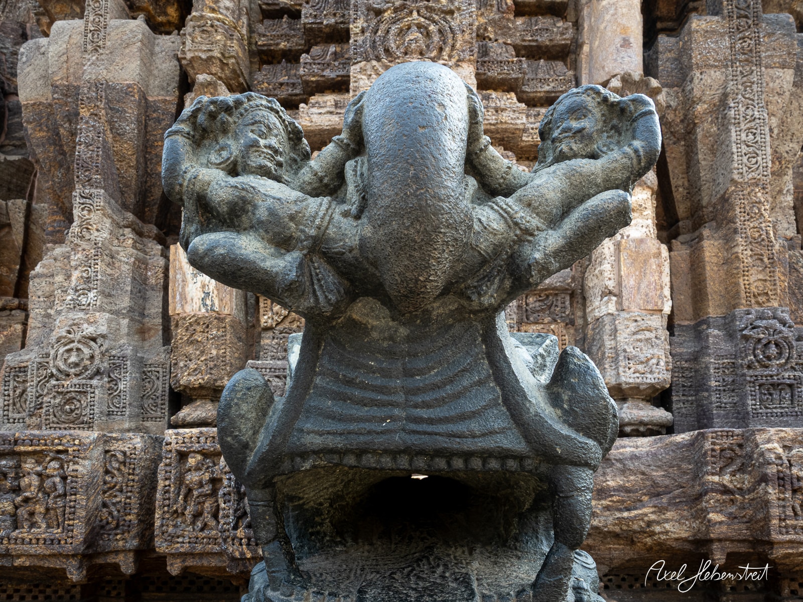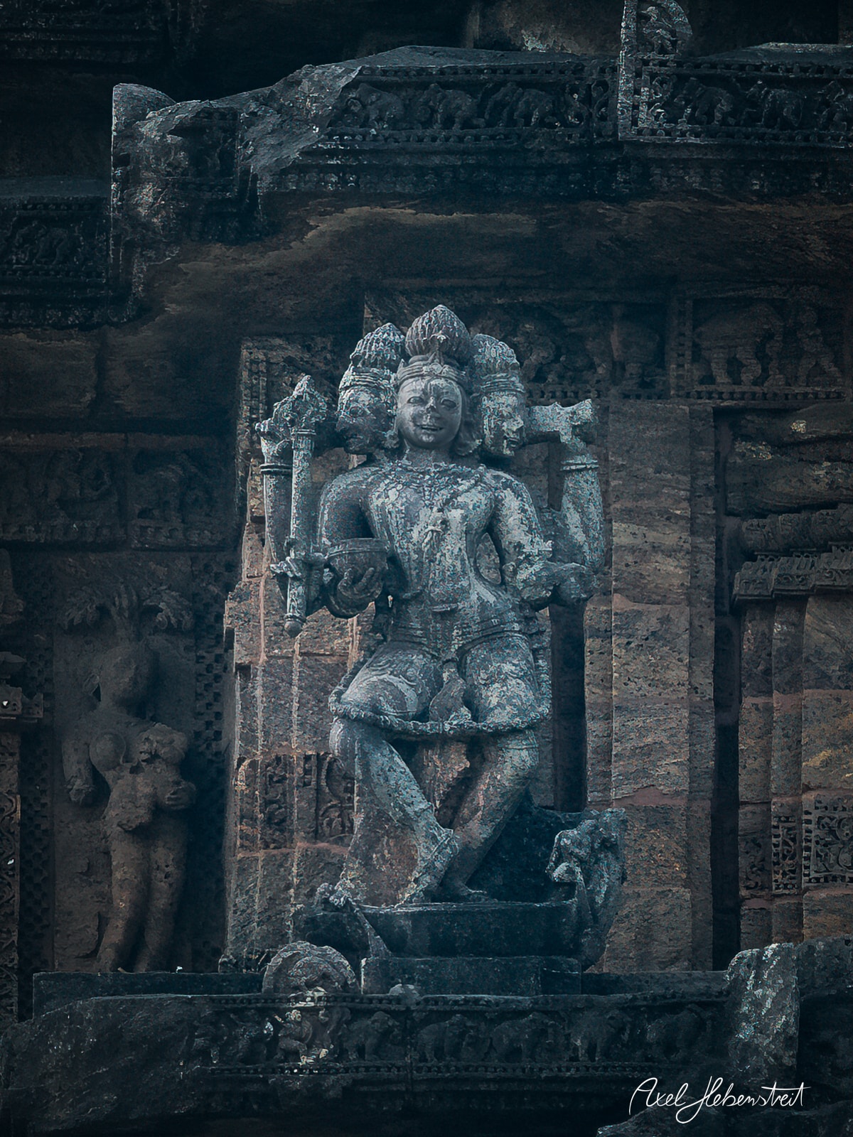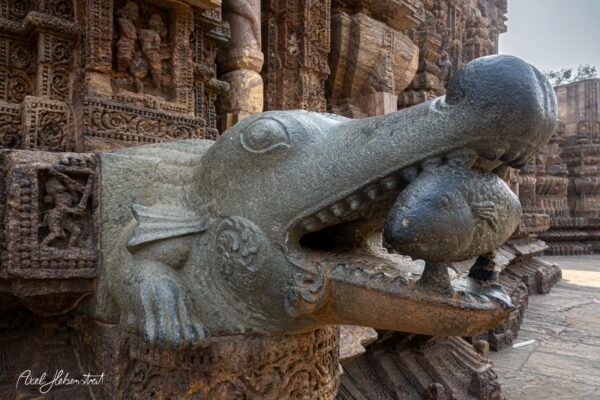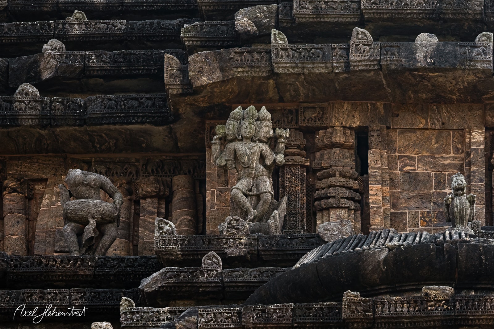 Der Sonnentempel von Konark ist ein hinduistischer Tempel aus dem 13. Jahrhundert, nahe der Küste von Odisha in Indien. Die gesamte Anlage ist wie ein riesiger Streitwagen gestaltet, mit insgesamt 24 steinernen Rädern. Jedes Rad hat einen Durchmesser von etwa 3 Metern und acht Speichen. Was heute noch erhalten ist, wirkt trotz allem enorm beeindruckend – auch wenn der höchste Teil nur noch die Versammlungshalle ist. Das angrenzende Hauptheiligtum (Vimana) war einst deutlich höher und soll rund 70 Meter erreicht haben.