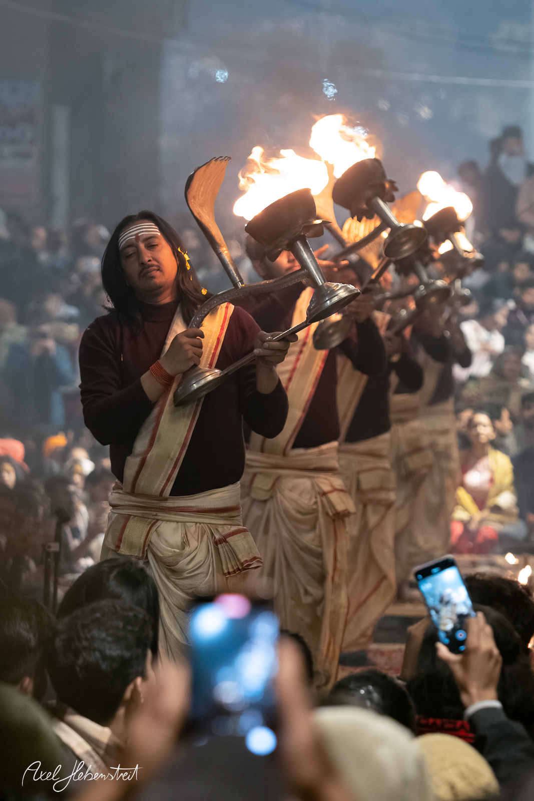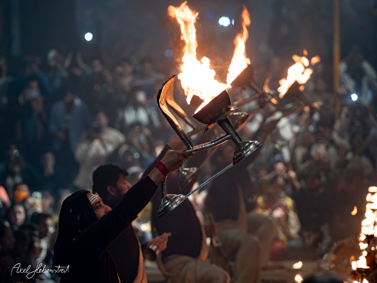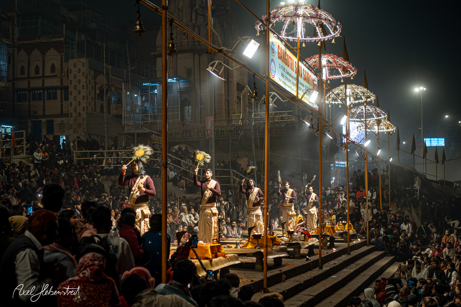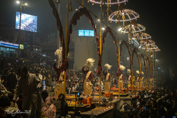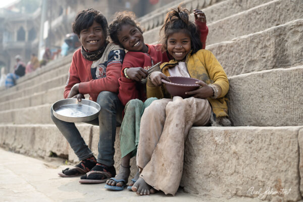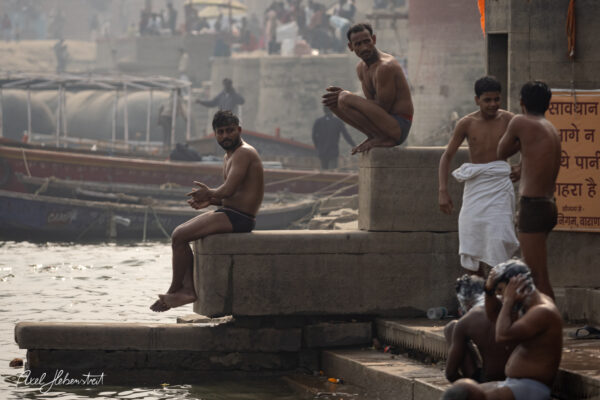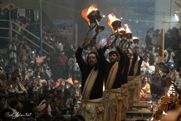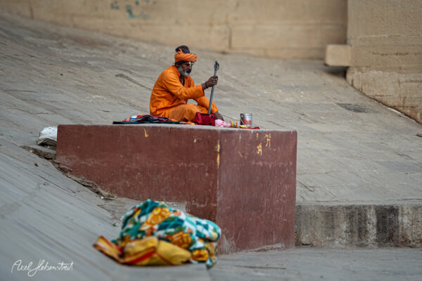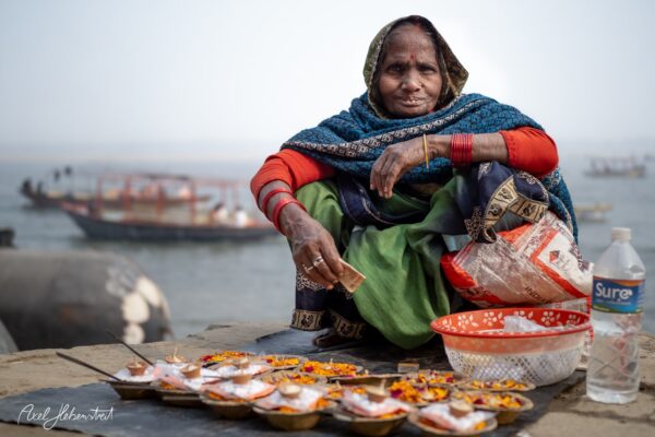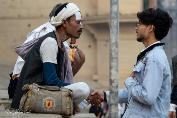Ich habe viele magische Momente erlebt, mit Kindern, mit einer Mutter mit ihren beiden Kindern, mit Babba Uday Narayan Singh der mir aus der Hand gelesen und spontan eine vedisch astrologische Beratung gemacht hat, mit vielen weiteren Babas, die ihre Weisheit oder ihre Fotorechte zum Kauf anbieten. War bei einem Aarti (zentrales, hinduistisches Lichtritual, bei dem brennende Dochte (in Ghee oder Kampfer) kreisförmig vor einer Gottheit oder deren Abbild geschwenkt werden, begleitet von Liedern, Glocken und Gebeten) mit dabei und wurde zu einer privaten Führung über den Krematorium-Ghat „Manikarnika Ghat” eingeladen.